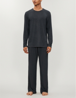 Mens Warm Pyjamas Sets Long Sleeve Brushed Thermal Nightwear Loungewear Pjs Cosy Grey W Check Pants Large Amazon Co Uk Clothing
