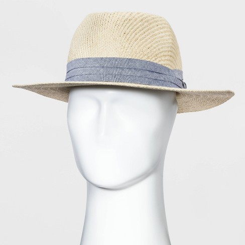 Men S Panama Straw Hat With Chambray Band Goodfellow Co Natural M L Target